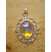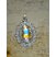 Ovales, versilbertes Medaillon mit einem stark facettierten Glasstein, der wunderschön schimmert. Öse ist mit dran.