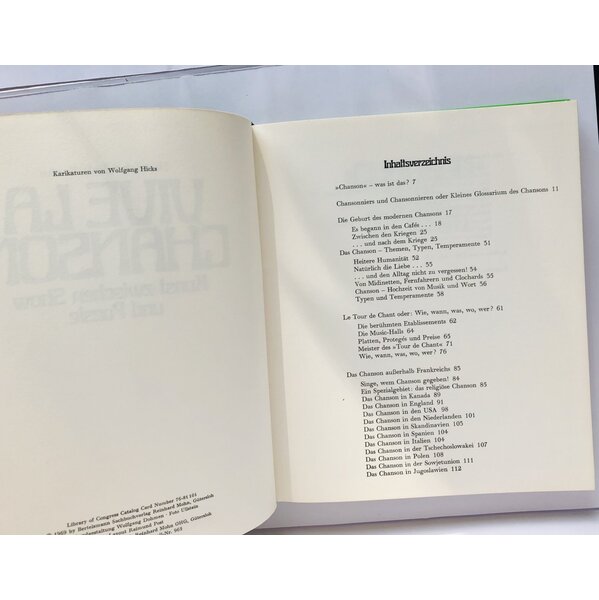 Reich bebildertes Nachschlagewerk für Liebhaber des Chansons - Inhalt: Chansonniers und Chansonnieren.../Die Geburt des modernen Chansons/Das Chansons - Themen, Typen, Temperamente/Le Tour de Chant.../Das Chanson außerhalb Frankreichs/Das Chanson in Deutschland/Aufbau einer Discothek