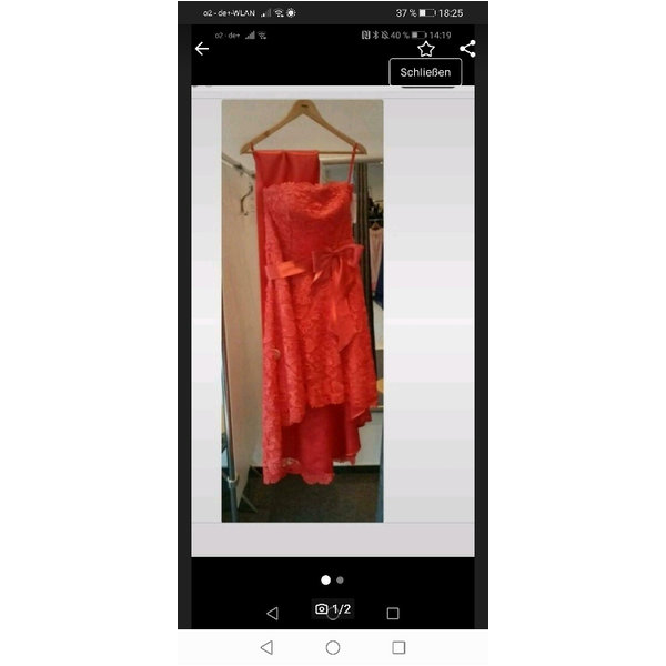 Das Kleid ist hinten zum schnüren und so in der Größe variable. Es wurde nicht getragen, da ich mich doch für ein anderes entschieden hatte. Es ist außerdem noch eine Stola dabei, ebenfalls in Koralle. Hoher neupreis
