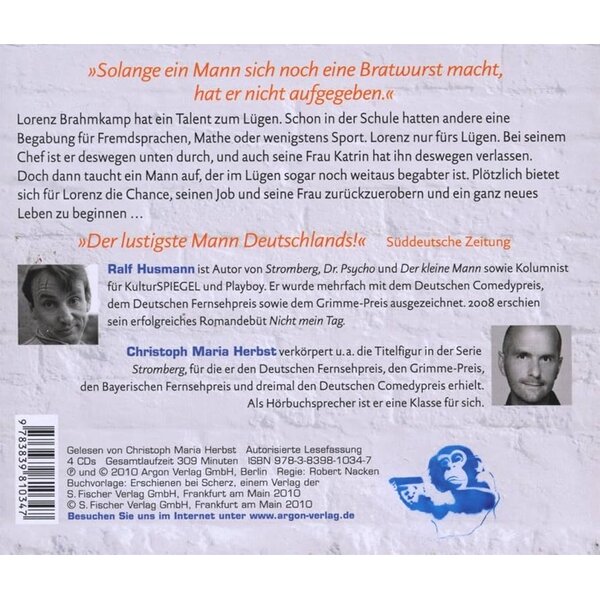 Lorenz Brahmkamp hat ein Talent zum Lügen. Schon in der Schule hatten andere eine Begabung für Fremdsprachen, Mathe oder wenigstens Sport. Lorenz nur fürs Lügen. Bei seinem Chef ist er deswegen unten durch, und auch seine Frau Katrin hat ihn deswegen verlassen.Doch dann taucht ein Mann auf, der im Lügen sogar noch weitaus begabter ist. Plötzlich bietet sich für Lorenz die Chance, seinen Job und seine Frau zurückzuerobern und ein ganz neues Leben zu beginnen ...