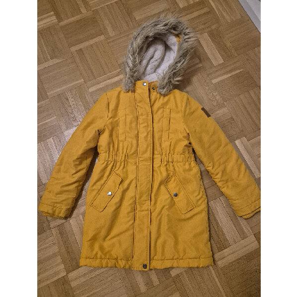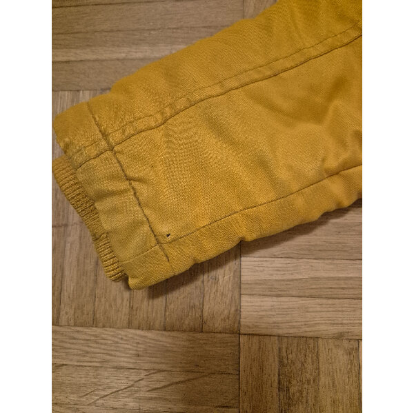 Jacke hat sichtbare Gebrauchsspuren und auch den ein oder anderen Fleck, den man bei der Farbe natürlich sieht. Ein Druckknopf einer Vordertasche ist innen ausgerissen, am hinteren linken Ärmel ein kleines Löchlein, insgesamt aber gerade zum Spielen noch gut tragbar und deshalb der günstige Ticketpreis