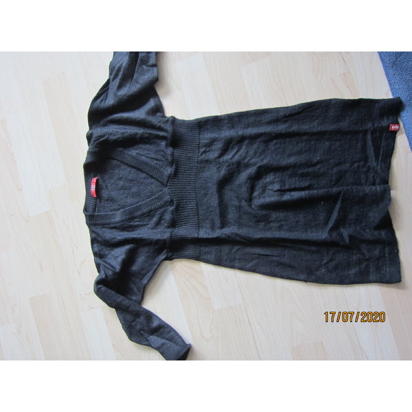 ch gebe hier eine warme Tunika in schwarz von Esprit mit großem V-Ausschnitt an. Die Tunika hat einen Wollanteil, leider kann ich nicht mehr sagen wieviel, da ich das Etikett herausgeschnitten habe. Die Tunika hat unter der Brust einen eingearbeiteten Streifen, der die Tunka unterteilt. Die Tunika hat über dem Streifen eine einfache Brustweite von 32 cm (ungedehnt). Die Gesamtlänge ist 63 cm. Eingetragene Gr. ist S, ist aber eher XS.