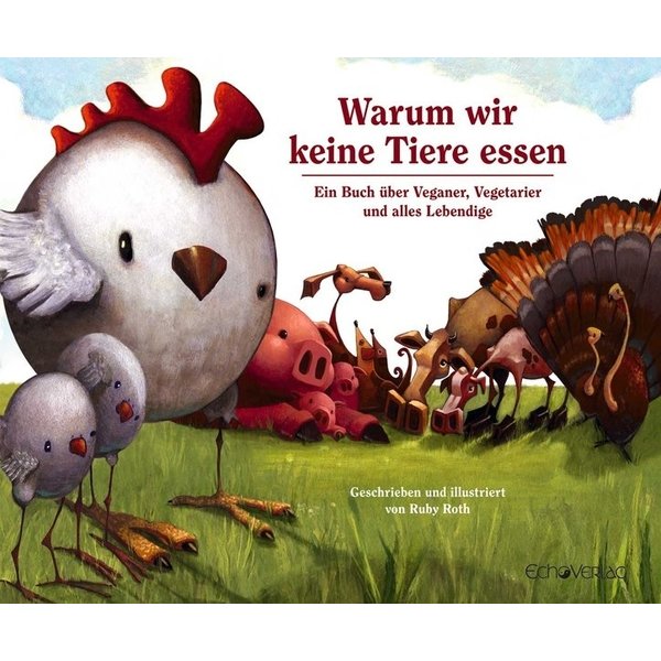 Dieses Buch bringt dem jungen Leser (im Alter zwischen sechs und zehn Jahren) mit farbenfrohen Bildern und lebendigen Texten den Vegetarismus und Veganismus näher. Das von Ruby Roth geschriebene und bebilderte Buch lebt von der einfühlsamen Darstellung der Hühner, Schweine, Truthähne, Kühe und vieler anderer Tiere. Sie werden in ihrem natürlichen Umfeld gezeigt, wo sie in der Erde wühlen, Freundschaften schließen, miteinander kuscheln, sich gegenseitig putzen und sich durch Instinkte und Rituale innerhalb des Familienverbandes schützen, aber auch unter den schrecklichen Bedingungen der Massentierhaltung. Die negativen Auswirkungen des Fleischkonsums auf unsere Umwelt, die Regenwälder und bedrohte Arten werden aufgezeigt.