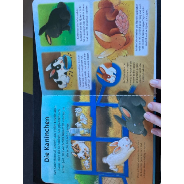 Es werden die Bauerhoftiere erklärt. Hühner, Enten, Kaninchen, Kühe, Schweine, Schafe und andere