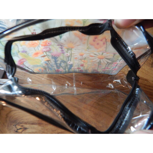 Vorderseite hat als Motiv Streuwiesenblümchen . Alle anderen sind transparend. Mit Reißverschluß.