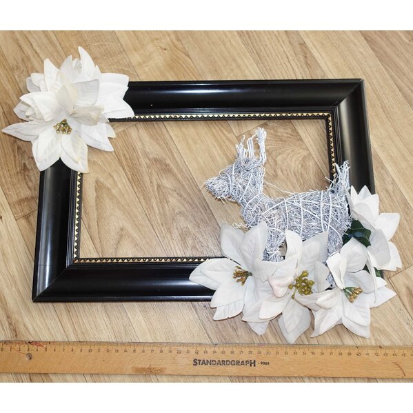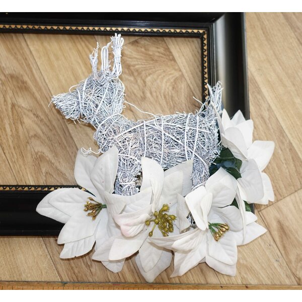da es sich hier um ein komplette upcykling aus verschiedenen Materialien handelt, hat es einen leichten used look. Es handelt sich auf einen schönen alten Bilderrahmen, der mit einem gebundenen Reh sowie diverer künstlicher Weihnachtssternblüten versehen ist. Die Blüten weisen leichte Verfärbungen aus. Schöne Symbiose. unikat