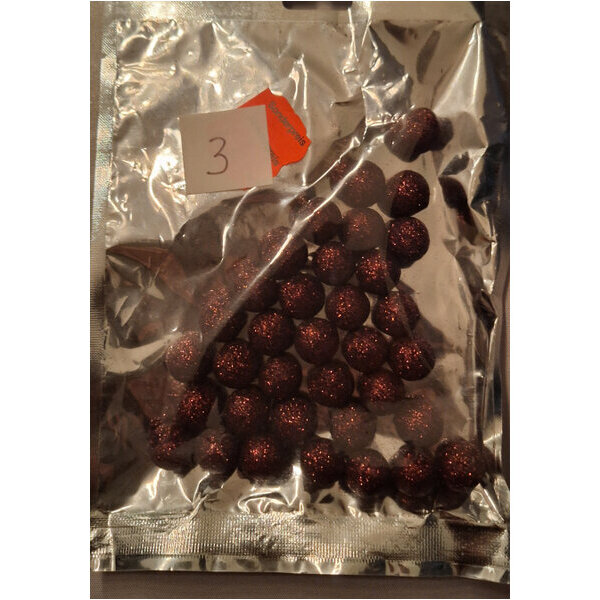Alle Weihnachtsartikel,3 für 2 mit gleicher Ticketzahl. 3 Ungeöffnete Tüten mit rotbraun Glitzerkugeln.3 Größen Siehe Foto