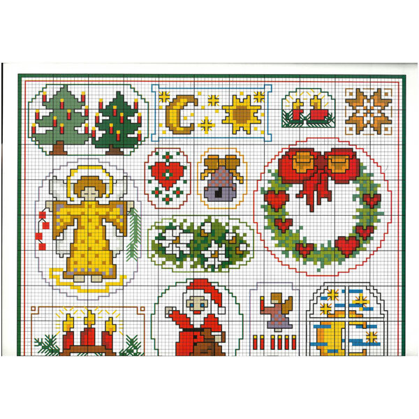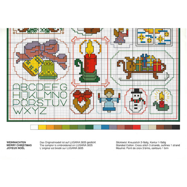 Hier sind auf 4 Seiten farbige Stickmuster von Weihnachts-Motiven abgebildet (siehe Bilder 2 und 3).