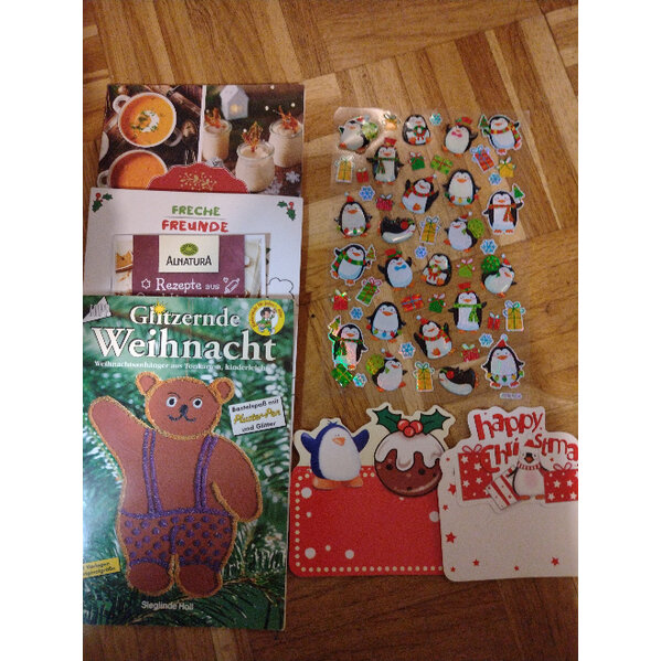 Weihnachten Pinguin Aufkleber Relief Glitzer 2 Karten Rezepte