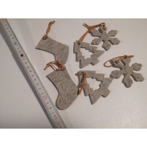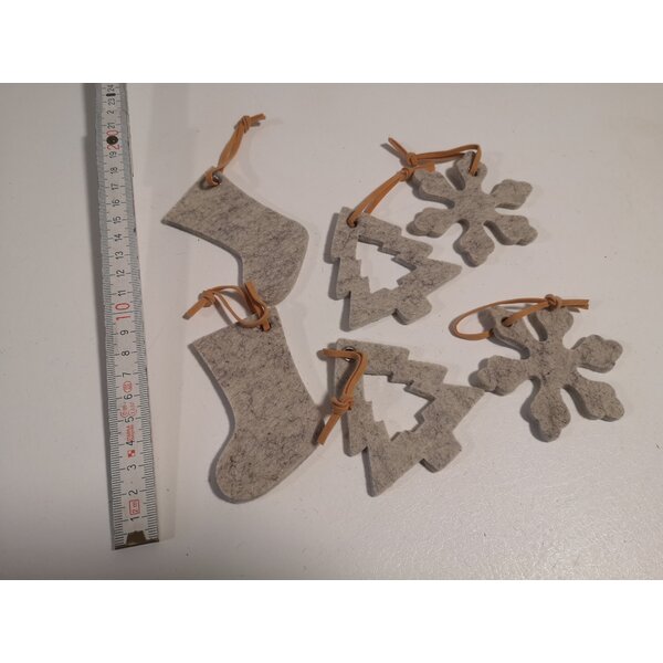 Weihnachtliche Filzanhänger in grau mit Lederband