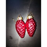 Ein Paar Weihnachts-Ohrringe mit Tannenzapfen, rot matt, Länge 4 cm, von mir frisch zusammengebastelt. Ohrhaken sind Edelstahl.