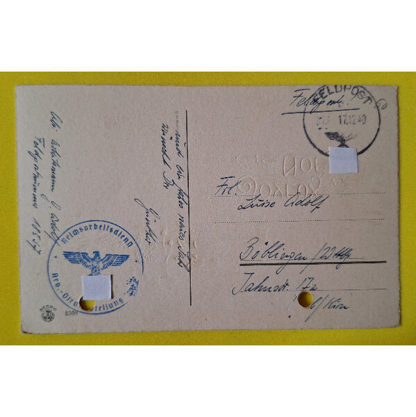 Ak Joyeux Noel,Feldpost 1940 gelaufen,2 Löcher in Karte, die Karte ist seitenverkehrt