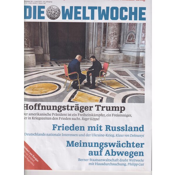 Ca. 50 Hefte aus Jahrgang ca. Mitte 2024 bis Mitte 2025 im Tausch gegen ältere Weltwoche-Ausgaben. Ggf. auch im Tausch gegen andere Magazine wie mare, Damals o.ä. Erreichbar auch unter: herbstmann1@web.de