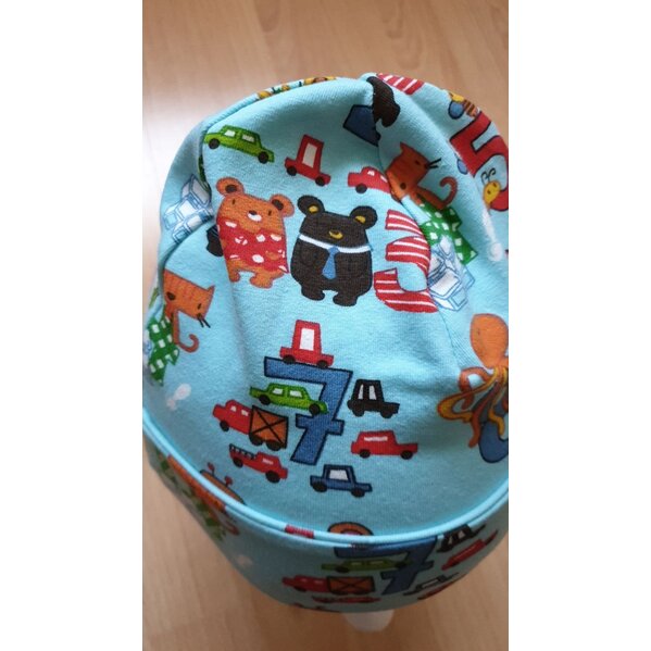 selbst genäht aus Stoffresten, der Hauptteil ergab mal Shirts für einen Vorschüler