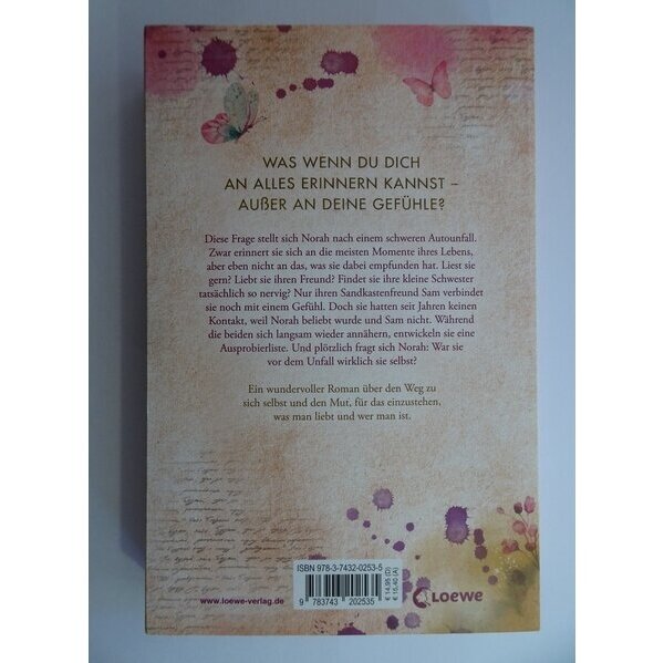 Diese Frage stellt sich Norah nach einem schweren Autounfall. Zwar erinnert sie sich an die meisten Momente ihres Lebens, aber eben nicht an das, was sie dabei empfunden hat. Liest sie gern? Liebt sie ihren Freund? Findet sie ihre kleine Schwester tatsächlich so nervig? Nur ihren Sandkastenfreund Sam verbindet sie noch mit einem Gefühl. Doch sie hatten seit Jahren keinen Kontakt, weil Norah beliebt wurde und Sam nicht. Während die beiden sich langsam wieder annähern, entwickeln sie eine Ausprobierliste. Und plötzlich fragt sich Norah: War sie vor dem Unfall wirklich sie selbst?