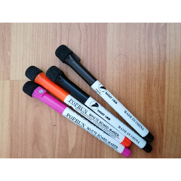 Whiteboard Stifte abwischbar 4 Farben dünne Spitze, Deckel mit Magnet und Schwamm zum abwischen