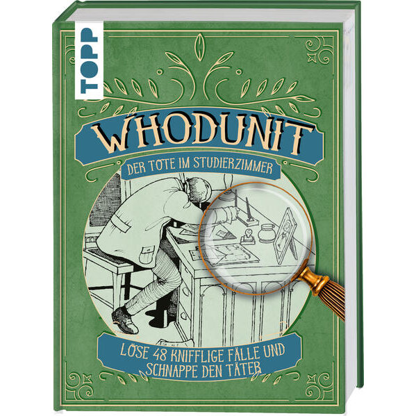 "Whodunit - Der Tote im Studierzimmer" enthält Kurzgeschichten in zwei Schwierigkeitsstufen und ist mit praktischem, handtaschentauglichem Format und kurzen Geschichten perfekt auch für unterwegs.