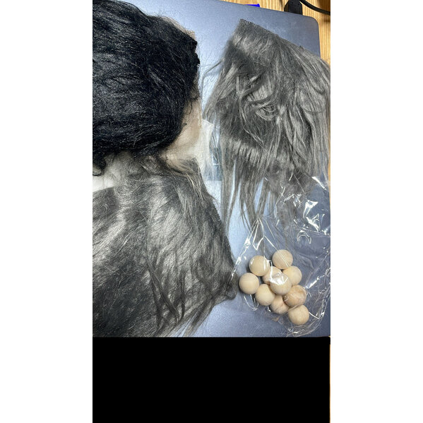 11 Bärte zum basteln in den Farben Grau, Schwarz, Weiß und Hellbraun. Die Bärte können zugeschnitten werden. Dazu 11 Holzkugeln die als Nasen verwendet werden können.