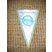 Länge: ca. 20cm (ohne Aufhängung); Breite: 12,5 cm (oben). Die Fotos zeigen die Vorder- und Rückseite des Wimpels.