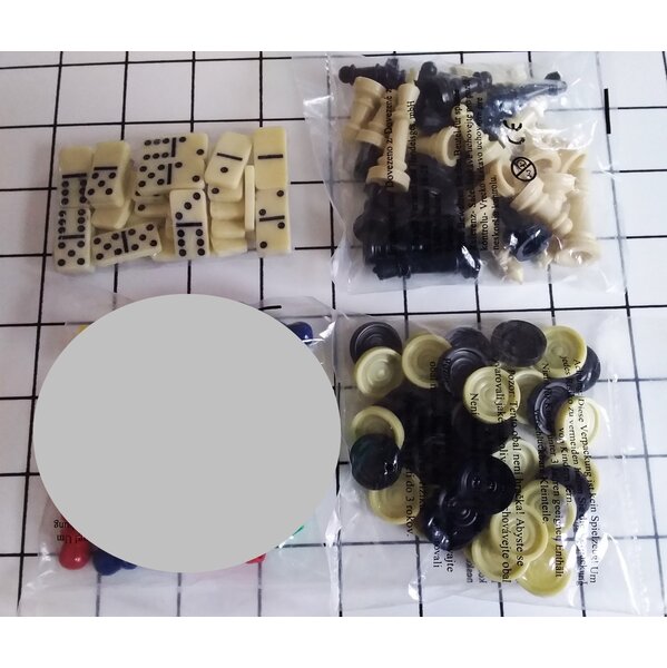 Neue Spielfiguren für Schach, Mühle, Domino. Die Beutel sind ungeöffnet