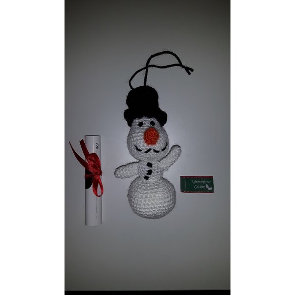 Neu, selbst gehäkelt. Es handelt sich um Søren Schneemann aus einem Wollowbies Häkelset. Der Schneemann ist fertig gehäkelt mit Aufhängschnur, Herzknopf am Hintern, Steckbrief zum Ausfüllen und Schildchen "Winterliche Grüße".
