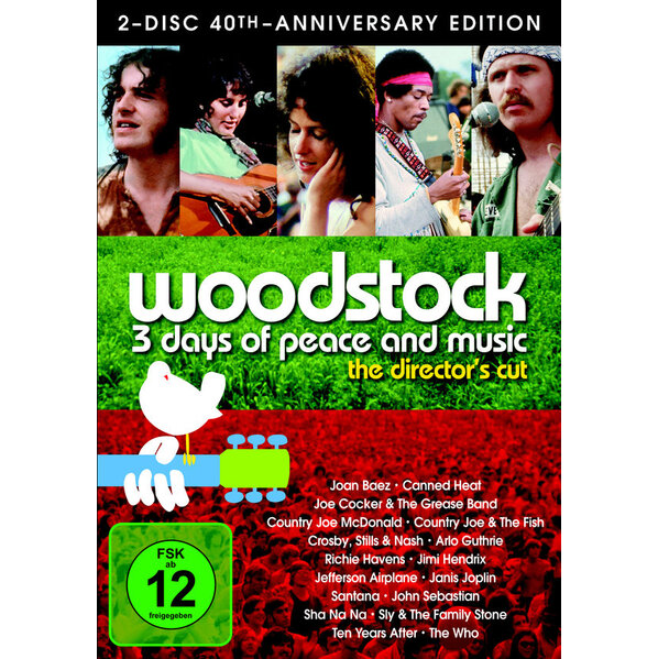 Die Wiederauferstehung eines der größten Momente des 20. Jahrhunderts. Das bekannteste Rockereignis aller Zeiten. 1969 versammelten sich eine halbe Million Menschen in der Nähe des kleinen Ortes Woodstock, um den bedeutendsten Musikern ihrer Generation zuzuhören. Drei Tage des Friedens, der Musik und der Liebe. Drei Stunden unvergessene Bilder und faszinierende Musik einer Zeit, die heute noch genauso lebendig ist, wie vor zwanzig Jahren. THE WHO "We're Not Gonna Take It", TEN YEARS AFTER "I'm Going Home", JOE COCKER "With A Little Help From My Friends", CROSBY, STILLS, NASH AND YOUNG "Wooden Ships", JIMI HENDRIX "Purple Haze", SLY & THE FAMILY STONE "I Want To Take You Higher", SANTANA "Soul Sacrifice", RICHIE HAVENS "Freedom", SHA-NA-NA "At The Hop", JOAN BAEZ "Joe Hill".