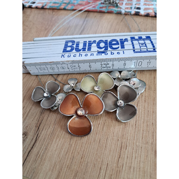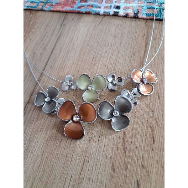 Wunderschöne Kette mit silbernen und pastelligen Metallblüten, 2 Reihig