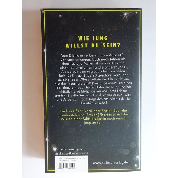 Vom Ehemann verlassen, muss Alice (43) von vorn anfangen. Doch nach Jahren als Hausfrau und Mutter ist sie zu alt für die einen, zu unerfahren für die anderen Jobs. Als sie von dem unglaublichen reizenden Josh (26!!!) auf Ende 20 geschätzt wird, hat sie eine Idee: Wieso soll sie ihr Alter nicht ein bisschen „korrigieren“? Prompt bekommt sie einen Job, dazu ein paar heiße Dates mit Josh, und hat plötzlich eine blutjunge Version ihres Lebens zurück. Bis die Sache mit Josh immer ernster wird und Alice sich fragt: Liegt das am Alter, oder ist das etwa – Liebe?