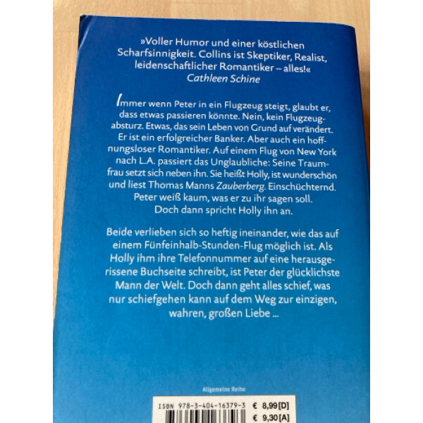Immer wenn Peter in ein Flugzeug steigt, glaubt er, dass etwas passieren könnte. Nein, kein Flugzeugabsturz. Etwas, das sein Leben von Grund auf verändert. Er ist ein erfolgreicher Banker. Aber auch ein hoffnungsloser Romantiker. Auf einem Flug von New York nach L.A. passiert das Unglaubliche: Seine Traumfrau setzt sich neben ihn. Sie heißt Holly, ist wunderschön und liest Thomas Manns Zauberberg. Einschüchternd. Peter weiß kaum, was er zu ihr sagen soll. Doch dann spricht Holly ihn an. Beide verlieben sich so heftig ineinander, wie das auf einem Fünfeinhalb-Stunden-Flug möglich ist. Als Holly ihm ihre Telefonnummer auf eine herausgerissene Buchseite schreibt, ist Peter der glücklichste Mann der Welt. Doch dann geht alles schief, was nur schiefgehen kann auf dem Weg zur einzigen, wahren, großen Liebe ...