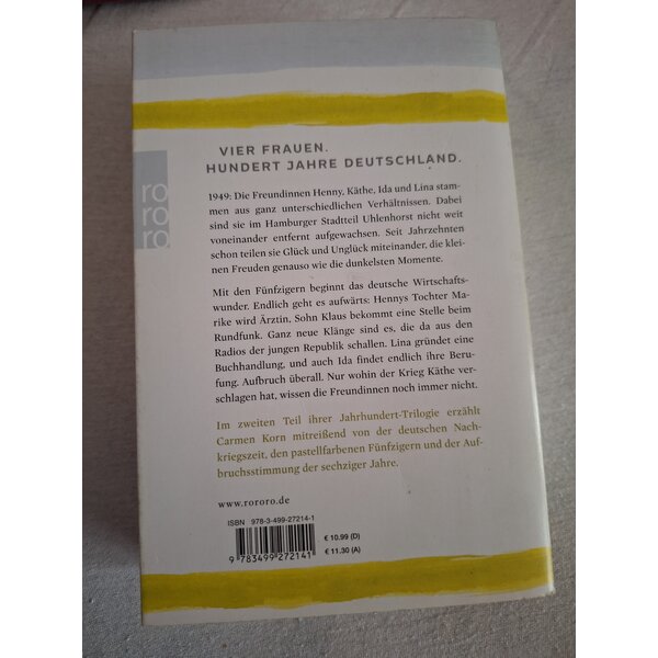 Mit den Fünfzigern beginnt das deutsche Wirtschaftswunder. Endlich geht es aufwärts: Hennys Tochter Marike wird Ärztin, Sohn Klaus bekommt eine Stelle beim Rundfunk. Ganz neue Klänge sind es, die da aus den Radios der jungen Republik schallen. Lina gründet eine Buchhandlung, und auch Ida findet endlich ihre Berufung. Aufbruch überall. Nur wohin der Krieg Käthe verschlagen hat, wissen die Freundinnen noch immer nicht...