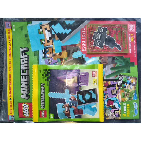 Mit Sammelkarte Nummer 7 und Lego minifigur enthält in Diamantrüstung und Schild und Enderperle und Shulker
