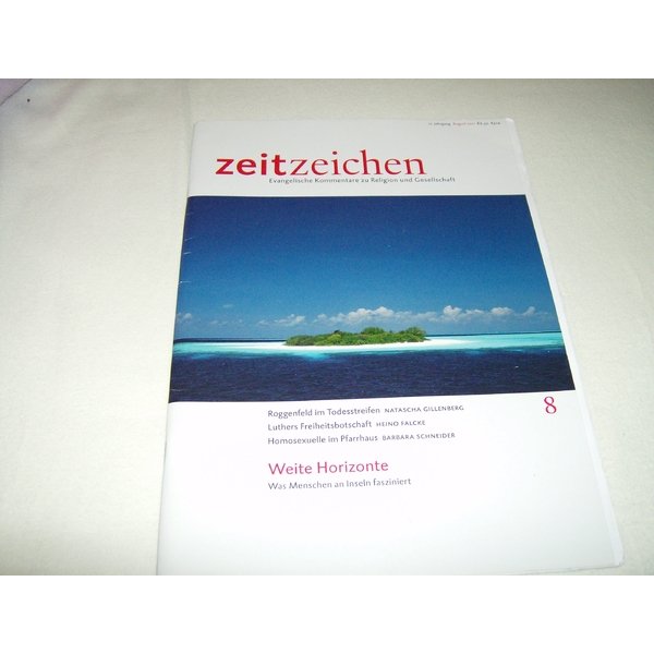 Ausgabe August 2011 der Zeitschrift "Zeitzeichen - Evangelische Kommentare zu Religion und Gesellschaft". Die Zeitschrift ist nur im Abo oder über Einzelbestellung im Buchhandel zu beziehen. Die Zeitschrift befindet sich in einem sehr guten, nur durchgeblätterten Zustand (lediglich minimale Lagerungsspuren am Einband vorhanden).