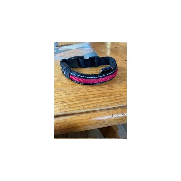 - rotes Leuchthalsband ((Batterie muss erneuert werden).