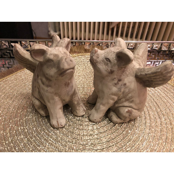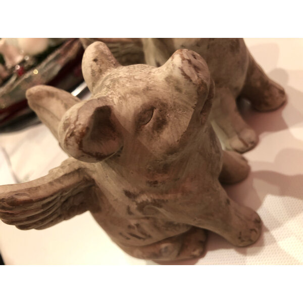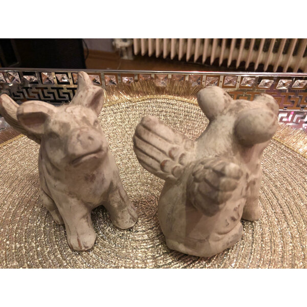 Sehr guter Zustand. Wurden neu gekauft. Hatte mehr Schweinchen gehabt, als Silvestergeschenk. Diese beiden sind noch übrig und können jemand anderem ein neues Jahr Glück bringen. Sehen süß aus mit den Flügeln, wie Engel, passen so sehr gut zur Advents- und Weihnachtszeit. Das Material ist vermutlich Keramik, die Farbe ist ein Beige-Braun-Grau und passt überall zu. Würde auch ein Schweinchen einzeln abgeben für 3 TTs.