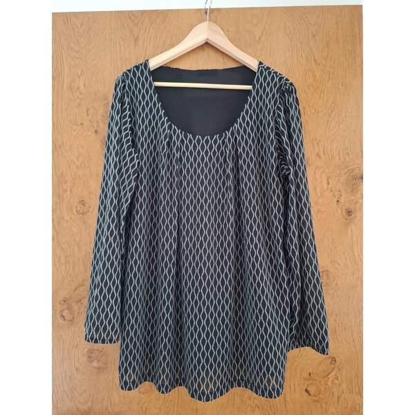 Am Ausschnitt auf beiden Seiten zweimal gerafft, sieht man aif Foto 1