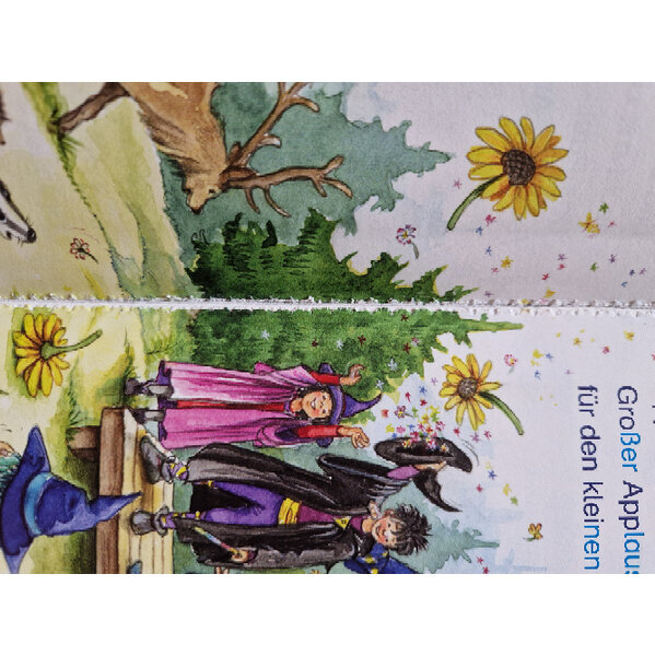 Im Cover etwas geknickt, eine Seitenverbindung ist komisch ausgefranst (siehe Foto)