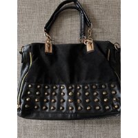Handtasche mit Nieten und Reißverschlüsse , Farbe: schwarz , hinten 1 Reißverschluss