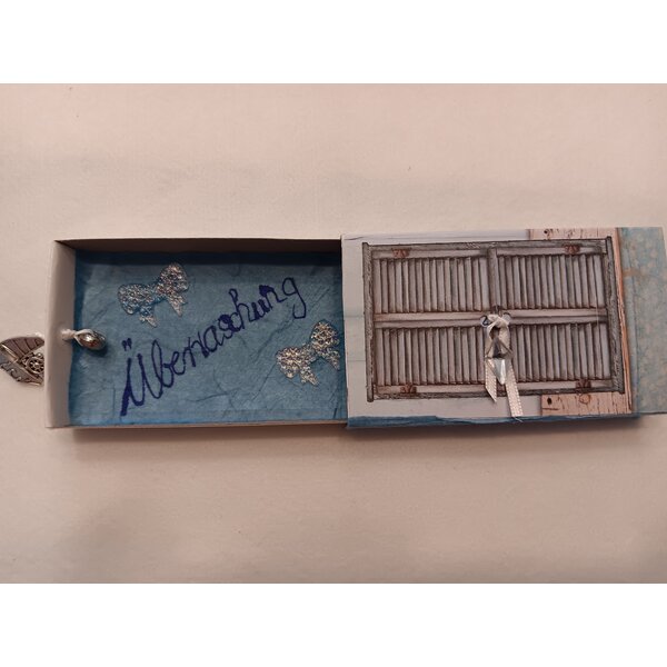 Neu hergestellt aus recycelten Streichholzschachteln mit Dekopapier, Perlen..., innen mit Filz ausgelegt.