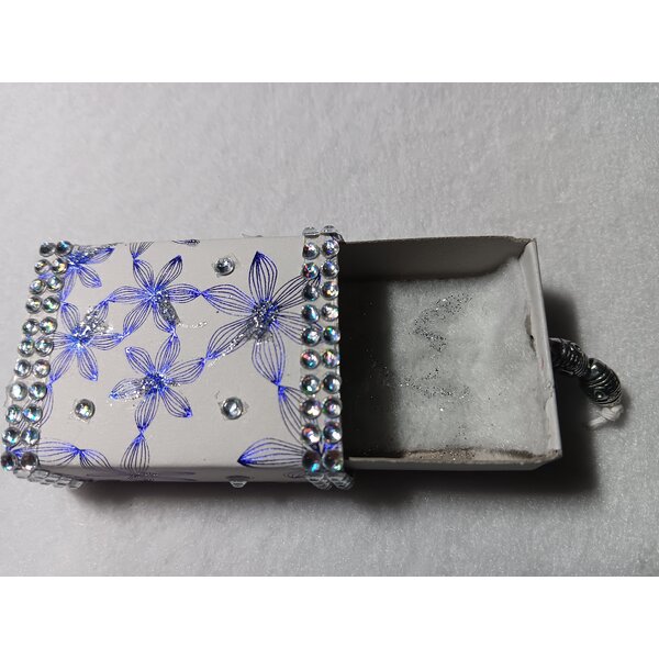 Neu hergestellt aus neuen Papierschachteln mit Dekopapier, Perlen..., innen mit Stoff oder Filz ausgelegt. Nicht rundum beklebt!