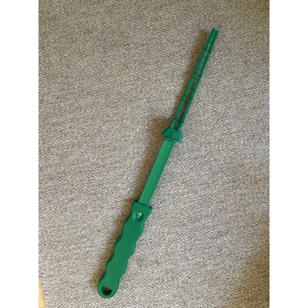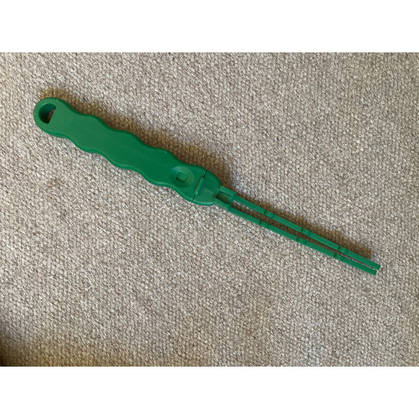 Ausziehbarer Halter für Einwegstaubtücher. Gibt es bei Drogeriediscountern zu kaufen. Die Gabel vorn wird in das Staubtuch gesteckt. Man kommt damit prima in entlegene Ecken und schmale Zwischenräume.