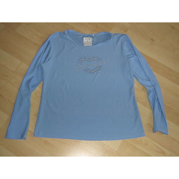Schöner Pulli (ich schätze Gr. M, sthet leider nicht drin) mit Glitzeraufdruck in hellblau