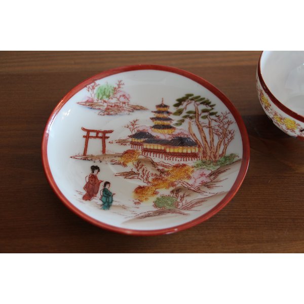 Kleine chinesische Teetasse mit Unterteller und asiatischem Motiv