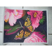 fertiges Bild diamond painting mit einem tollen Schmetterling und schönen Glitzerapplikationen.