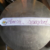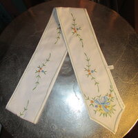 grob gewebte Baumwolle mit Stickereien: auf einer Seite "Herein spaziert" - auf der gegenüberliegenden Seite Blumenmuster ... mehr