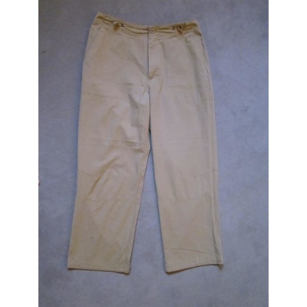 selten getragen, aber bei genauerem Hinblicken zum einstellen bei TT habe ich 2 winzige Mängel entdeckt, die mir vorher nicht auffielen: neben dem Knopf ist die Naht ein wenig ausgefranst + am rechten Hosenbein unten befindet sich ein winziger Fleck (s. Photos) - deshalb für ein Ticket