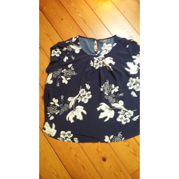 edles Oberteil in dunkelblau mit weißen Blumen