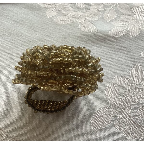 Schöner goldfarbener Ring, kleine Perlchen, etc. in Form einer Blüte,Durchmesser Blüte 4 cm,