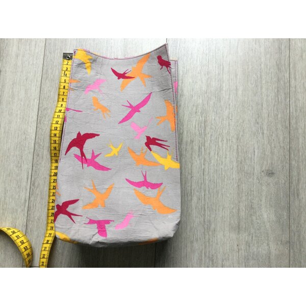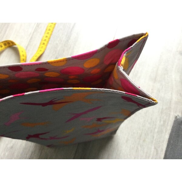 Genäht aus zwei Baumwollstoffen mit Vlieseline verstärkt.