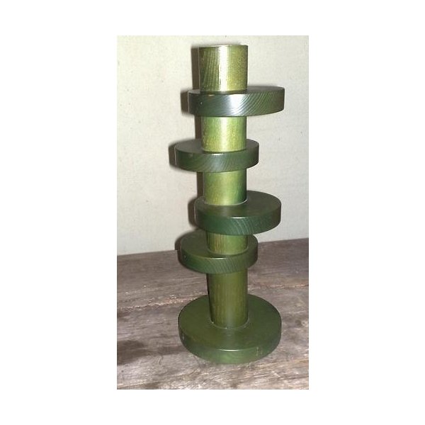 Der grüner Tafelleuchter für ein Teelicht ist aus Holz und hat eine interessante Gestaltung.