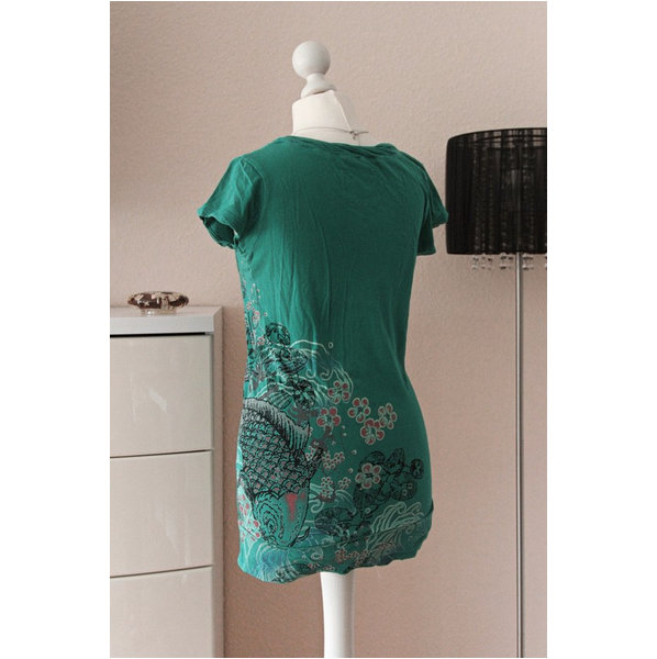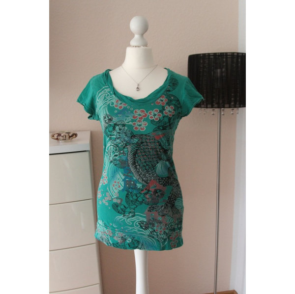 Artikelbezeichnung: Tshirt Größe laut Etikett: XS Die von mir empfohlenen Größen: XS, 34, kleine S, kleine 36 Farbe: grün Beschreibung: Schönes Tshirt mit japanischem Motiv. Love Japan ist eine Markenware, die für besonders hohe Qualität steht. Daher sind die Neupreise meistens etwas teurer als üblich. Die Schneiderpuppe trägt Kleidergröße 34/36.